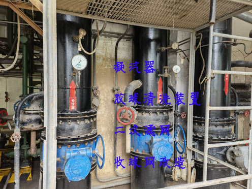 膠球清洗冷凝器自動在線膠球清洗裝置系統主要由注球器、回球器、球體分離器、智能可編程控制器等部件組成。
