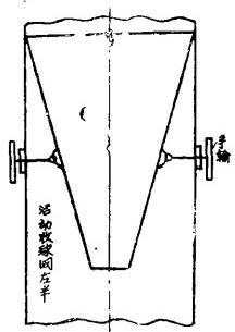 該廠試驗使用了一種活動式錐形收球網(wǎng)(圖甲)。它保留了錐形固定收球網(wǎng)收球效果好的優(yōu)點。在停用時又可以“短路”以減少水阻。(在使用時壓差0.041—0.048公斤/屬米2,在短路時壓差0.034—0.044公斤/厘米2)。收球網(wǎng)用活動鉸在上部和循環(huán)水出水管連接,中部用杠桿系統(tǒng)開關(guān),下部和膠球清洗裝置進水管相連。