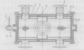作為此項(xiàng)技術(shù)的研究核心—清洗器的結(jié)構(gòu)設(shè)計(jì)不僅要實(shí)現(xiàn)膠球除垢、水流定向切換和膠球收、放球三者之間的有機(jī)結(jié)合,而且還要與清洗系統(tǒng)相配套。在綜合了熱電行業(yè)冷凝器系統(tǒng)采用的海綿膠球在線(xiàn)清洗技術(shù)的基礎(chǔ)上,將可完成水流定向切換換向閥的結(jié)構(gòu)設(shè)計(jì)引入本清洗器的結(jié)構(gòu)中,在清洗器的內(nèi)部裝上收、放球設(shè)施,依靠清洗器的定向轉(zhuǎn)動(dòng)實(shí)現(xiàn)水流定向切換和膠球收、放球功能,利用循環(huán)水系統(tǒng)以及系統(tǒng)的自身壓力完成對(duì)冷卻器管束的正反向膠球循環(huán)清洗過(guò)程,經(jīng)中試后反復(fù)修改定型。
