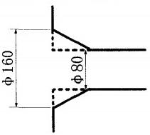原出球口設(shè)計(jì)成倒噴嘴,在出球口處造成失壓,影響了膠球泵的抽吸能力,現(xiàn)將出球口口徑均縮小至DN80,如圖3所示,虛線(xiàn)部分為改造后情況,并將方形擴(kuò)口封堵。膠球泵的抽吸能力與出球口面積成反比,改造后,膠球泵的抽吸能力提高802/402=4倍。