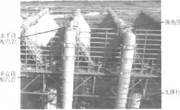 先對排汽管、配汽母管和配汽管(圖5)進行人工沖洗和清理。排汽管和配汽母管、配汽管直徑較大,先在內部搭設架子,用電動鋼絲刷對管壁進行徹底清理,再從上往下用高壓水槍進行沖洗,將雜質沖到配汽母管和排汽管水平段,然后徹底清除排汽管、配汽母管和配汽管水平段所有顆粒雜質。另外,清理配汽管時,不允許雜質進入換熱管內。