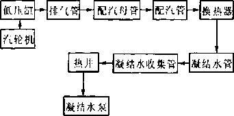 熱態沖洗的部件包括排汽管、配汽管、換熱管、凝結水管、凝結水收集管等。空冷凝汽器熱態沖洗時要求汽輪機處于盤車狀態,沖洗所用蒸汽來自汽輪機旁路系統。熱態沖洗時,從換熱管冷凝下來的凝結水不能進入熱井,必須安裝臨時放水管路。由于空冷系統處于真空狀態,臨時放水管路必須浸入到廢水收集池的水面以下,以避免破壞系統真空,因而需配備一廢水收集池。熱態清洗開始之前,將廢水收集池充好水。在熱態清洗過程中,凝結水先排放到廢水收集池,再經管道溢流至雨水井。