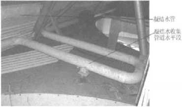 凝結水收集管的清理。凝結水收集管用于匯集各個換熱單元冷凝下來的凝結水,并引流至熱井,管徑一般較小。這段管道水平段較多,1臺600MW機組空冷系統凝結水收集管水平管(dl68mm,圖7)累計長達約960m,現在的冷態沖洗因沖洗水流量太小無法達到,所以特別建議對凝結水收集管進行單獨且大流量沖洗,仍然用沖洗凝結水管時安裝的臨時沖洗管道,將原先的凝結水管沖洗出口端封閉,打開凝結水收集管的進水閥門,將收集管上的排污法蘭打開,用高速水流將收集管內部的污物沖出系統,從凝結水收集總管處的排污法蘭處排放。沖洗至出水清澈、無大顆粒雜質為止。然后關閉排污法蘭,仍用臨時沖洗水對凝結水收集管及熱井進行沖洗,將雜質沖到熱井,后清理熱井。人工清理熱井時,可以先進行掃除,然后用海綿將泥水吸凈,后,用面團粘除細小的機械微粒。此外,建議凝結水收集管在安裝時整體呈一定的斜率,向下連接至熱井。