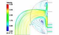圖4凝汽器入口水室的流動跡線圖