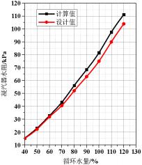 凝汽器水阻是凝汽器冷卻水在水側(cè)流動的阻力,一般由凝汽器冷卻管水阻、凝汽器水室及管端水阻組成。對于數(shù)值計算模型,設(shè)置不同的進口流速能得到不同的水阻,將其與凝汽器設(shè)計時測得的實驗數(shù)據(jù)進行比較,凝汽器水阻的大差值為9.2%,計算結(jié)果和設(shè)計結(jié)果差異較小,模型選用適當。